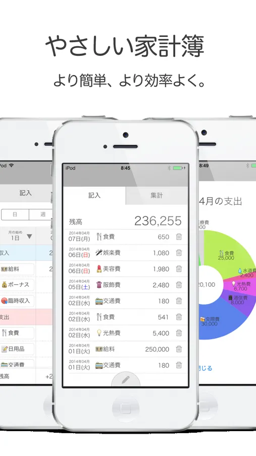 余分な機能を一切廃し、最小限の労力で最大限の成果を出すことをコンセプトに作られた家計簿です。
