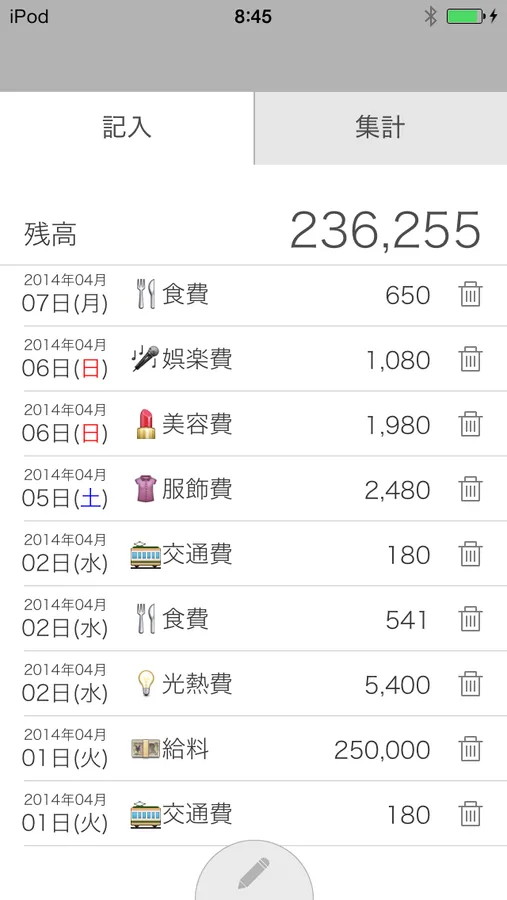 ・記入してすぐに残高が確認できます