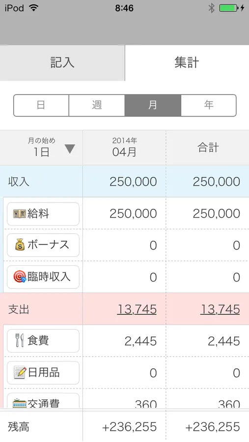 ・費目は収入が3個、支出が18個設定できます