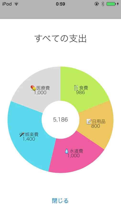 ・円グラフで支出の割合を確認できます