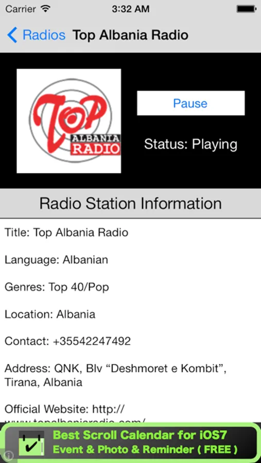 One of the great features provided in this app is that this app support multitasking / background mode. This means that you can listen to any of your favorite Albania radio channel and in the mean time, do other stuffs with your device such as reading books and browsing websites.