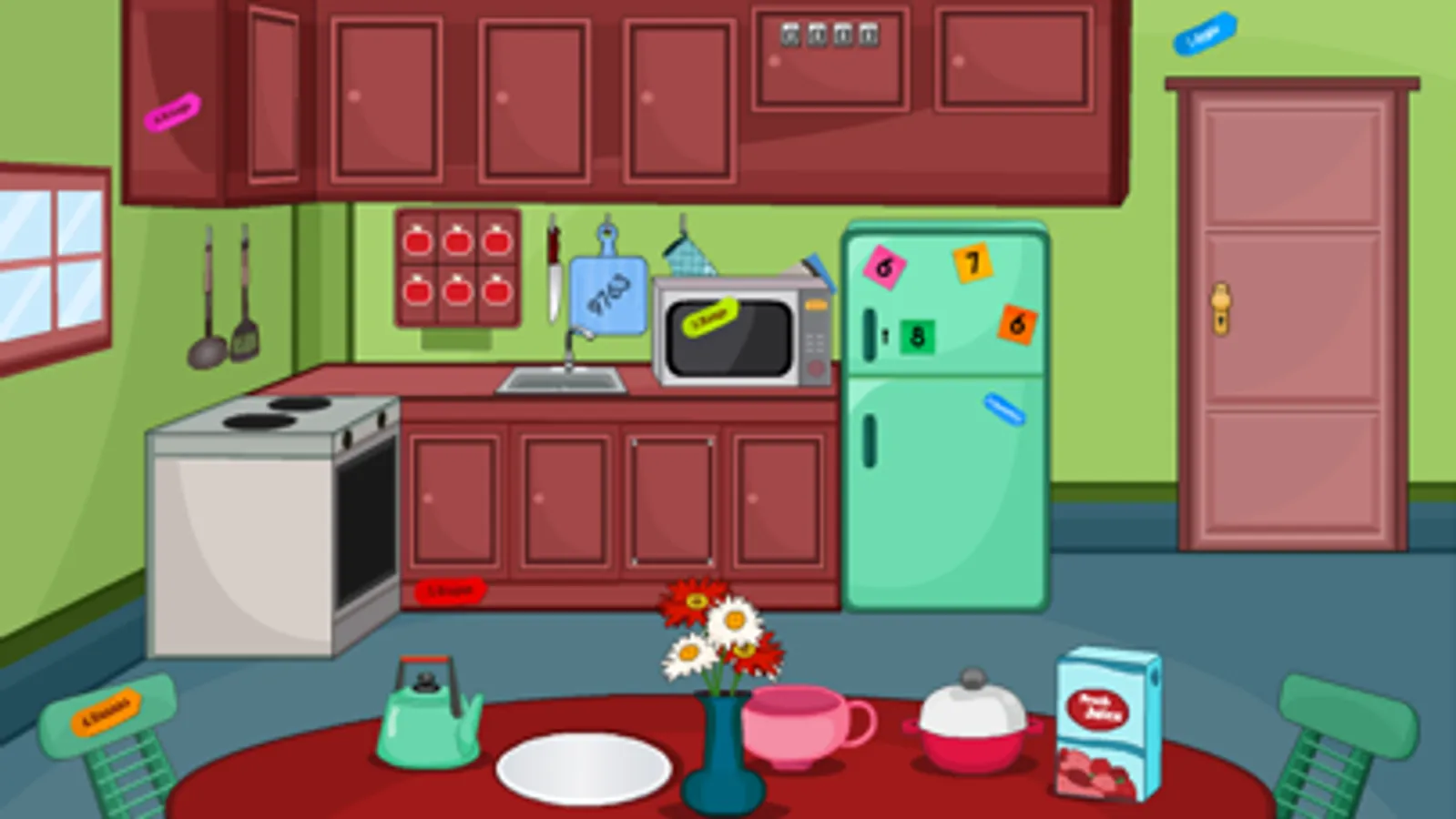 • Make use of all the hidden objects collected from the kitchen and escape.