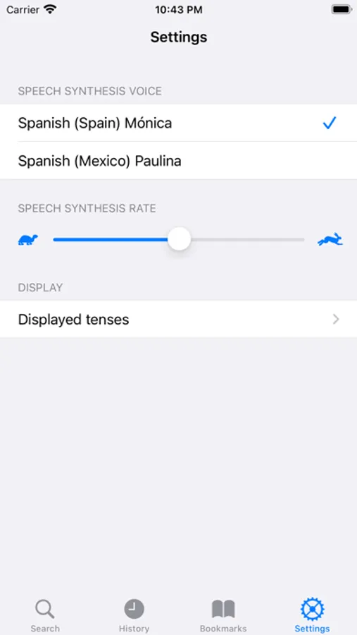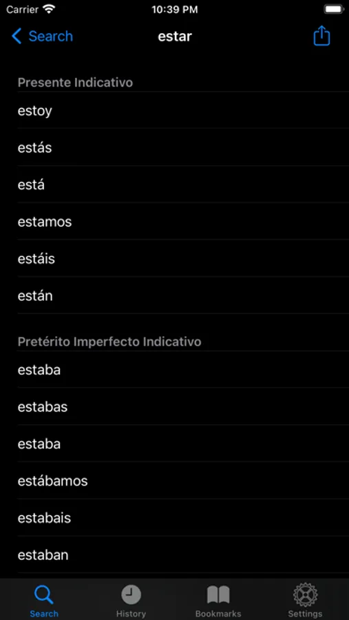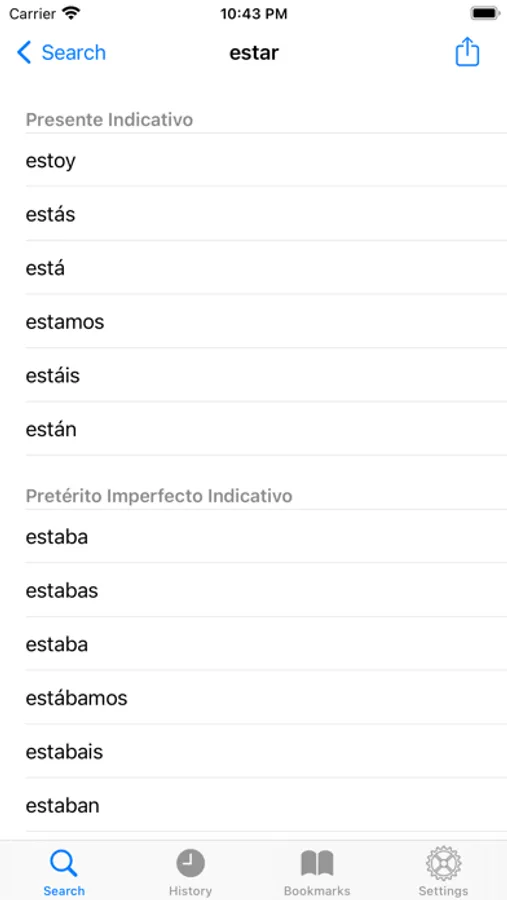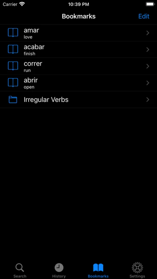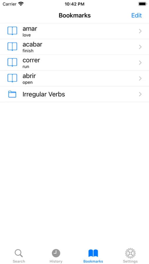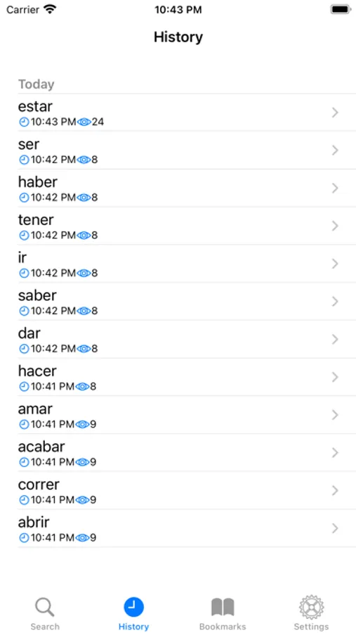 • History: see which verbs you are looking up most, quickly find recently looked up verbs.