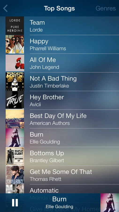 Songbot will also list the most played songs over the last 48 hours on radio, and then let you listen to them instantly. Songbot even lists the top songs by genre, so there's something for everyone.