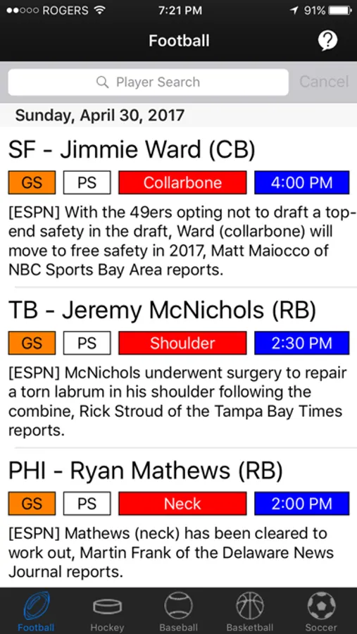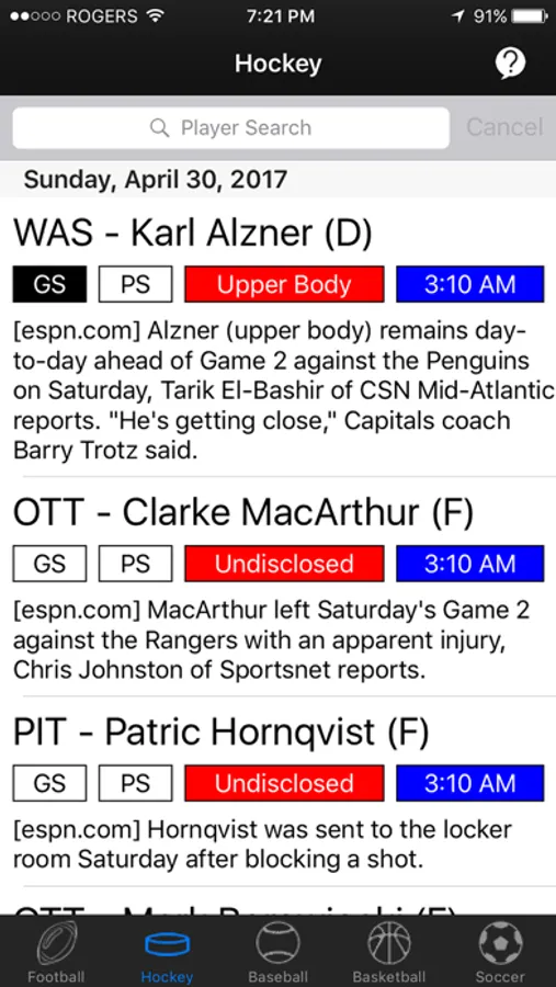 Get the latest injuries from the world of sports. Browse from a database of over 350,000 injuries, the biggest sports injury database in the world!
