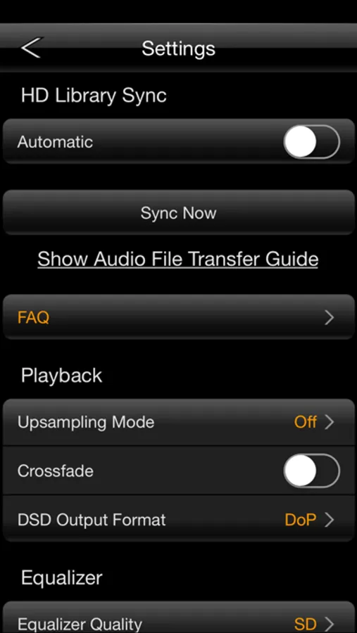 *6 Equalizing and Cross-fade settings are disabled when DoP output mode is selected.