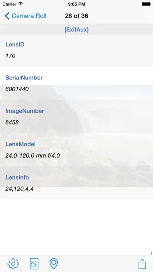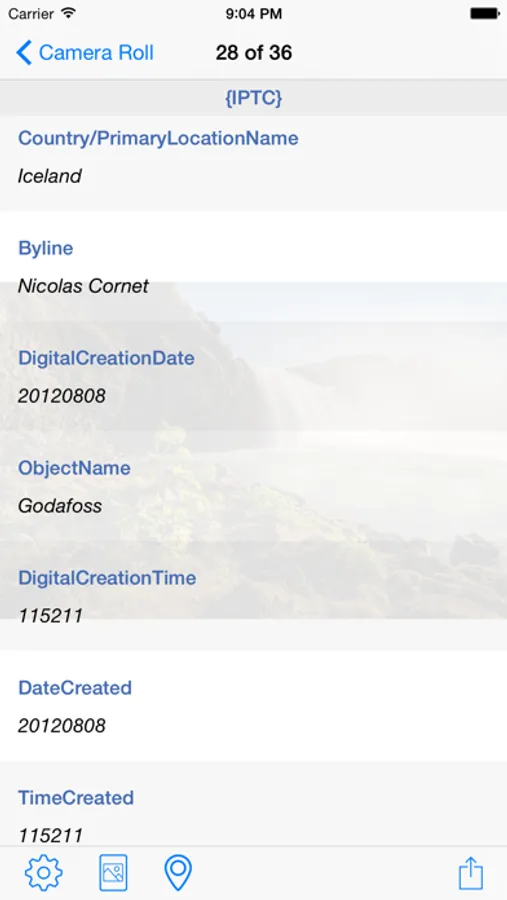 This app displays all metadata contained within the photo or video, regardless of the camera used or how the photo was taken - iPhone, iPad, Canon, Nikon, Minolta, Fuji, Olympus, Pentax, etc, doesn’t matter! Metadata Viewer will detect all metadata and present it to you!
