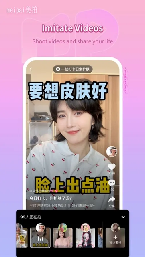 Eat, sleep, gossip, share dating tips and your daily life with your girlfriends. Chat about what it’s like before and after marriage, talk about popular topics and what’s in the news, and share your life freely on Meipai.