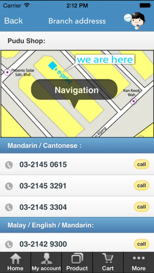 Store Navigation: Addresses of ourbranches will be showed, as well as navigation.