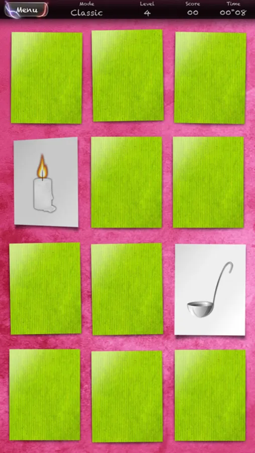 In this version for iPad, iPhone and iPod Touch, the game is composed of 4 game modes and more than 100 levels, where images are shuffled and placed face down on the screen. The player must discover two pictures (animals or food theme), letters (you can choose upper or lower case), or numbers whether these form a pair disappear, otherwise, are again covered and remittances in their original location on the screen.