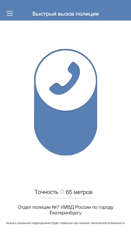 Приложение определяет местоположение пользователя, находит ближайший отдел полиции и производит звонок в дежурную часть. В случае, если в телефоне отключена функция определения местоположения производится звонок на номер 112. Таким образом, в экстренной ситуации вероятность успешного дозвона до полиции или экстренных служб повышается.