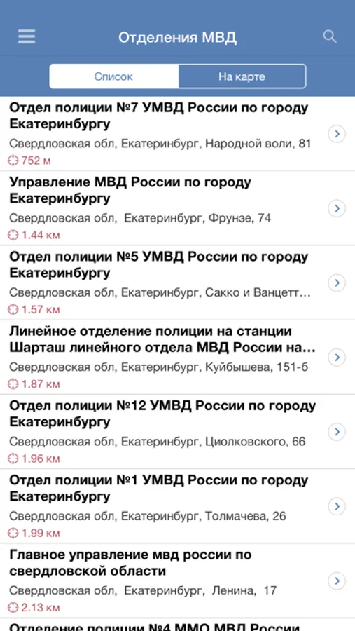 Приложение позволяет получить информацию о местоположении и контактах территориальных подразделений полиции, пунктах охраны порядка, участковых уполномоченных полиции по всей России. Все объекты отображаются на карте, имеется возможность изучить детальную информацию, посмотреть проезд до отделения МВД, а также позвонить по контактным телефонам и оставить отзыв о совершенном вызове.