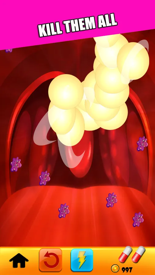 Germs infected the body and are spreading quickly. You are our only hope. Use your pills and power ups to get rid off them all, and heal the organism.