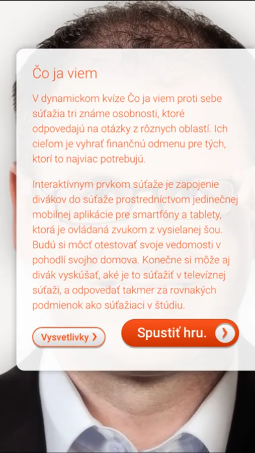 "Prostredníctvom aplikácie "Čo ja viem" sa môžu diváci v reálnom čase zapojiť do súťaženia v rovnomennej televíznej zábavnej šou RTVS. Vďaka jedinečnému systému ovládania aplikácie s využitím zvukových kódov z vysielaného programu zažijú diváci s aplikáciou podobné pocity ako súťažiaci v štúdiu a zároveň si s nimi v reálnom čase porovnajú svoje vedomosti. Odmenou za hru môžu byť aj zaujímavé ceny, o ktorých sa užívatelia viac dozvedia priamo v aplikácii. Viac informáciíí o samotnej televíznej šou a o jej vysielaní nájdete na www.rtvs.sk."