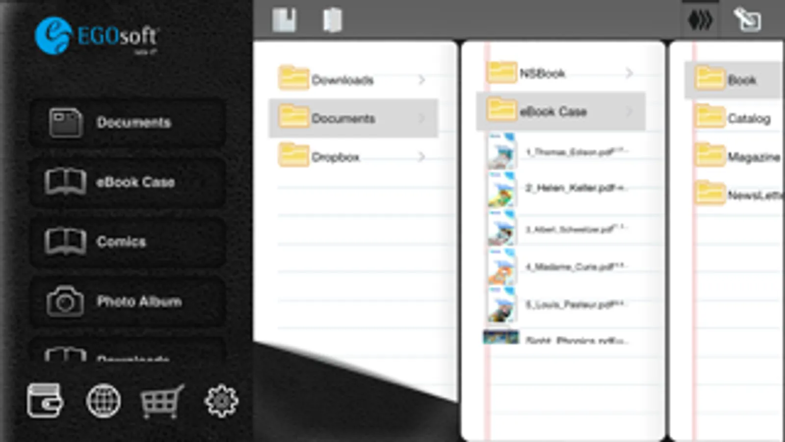It can be manage any of documents using built-in document manager function and read PDF, ZIP and rich-PDF files as well.. (a rich-PDF is created by authoring tool to provide editing and creation PDFs)