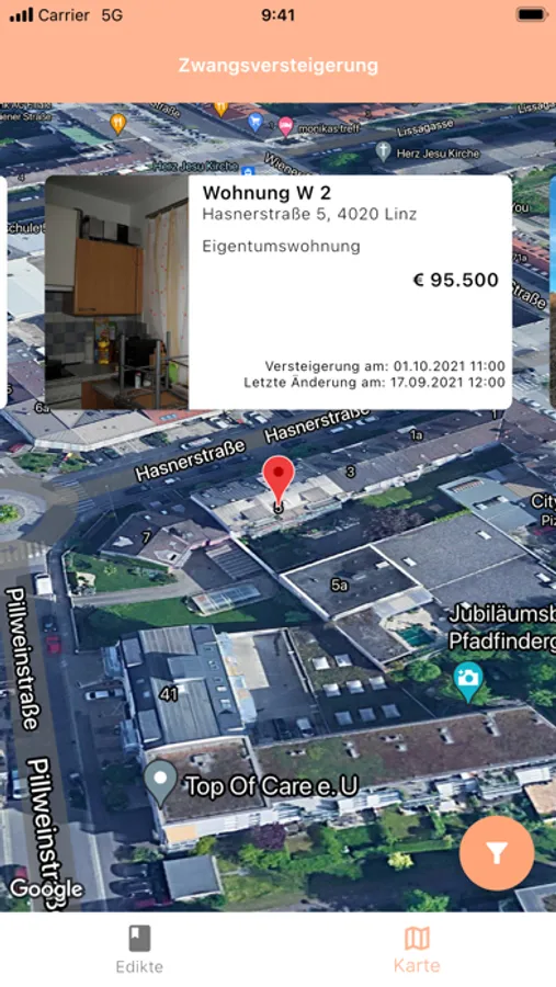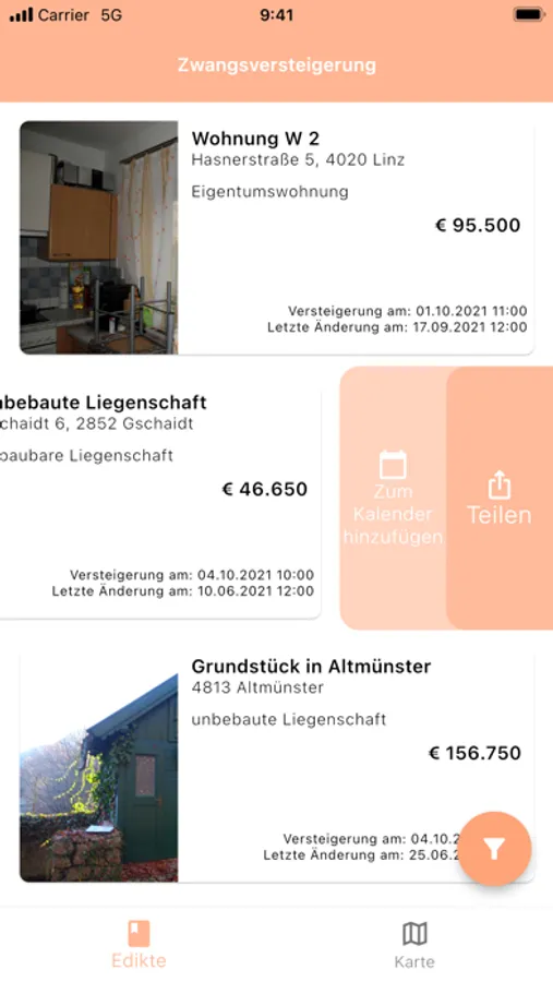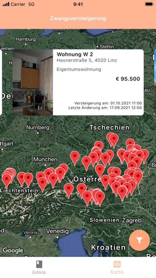 * Übersichtliche Darstellung aller Versteigerungen auf einer Karte und in Listenform