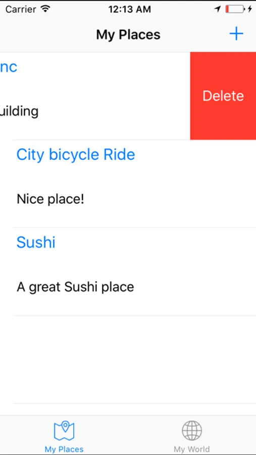 You can easily delete places (just swipe them from right to left) and add new ones (the + button). If you want to have lots of them don’t worry about it! The integrated search bar appears when you pull the list down.