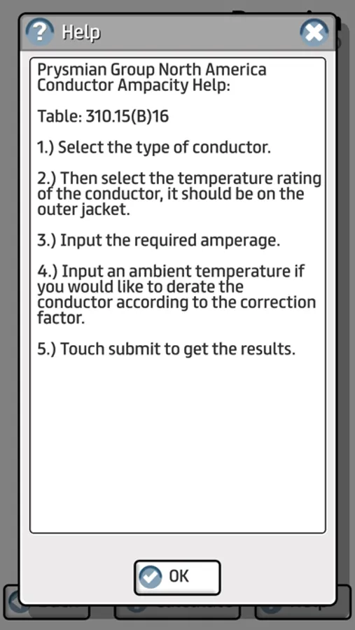 Prysmian Group's Ampacity Calculator is a quick and easy tool to get conductor ampacities for different temperature ratings. It is designed for contractors, electricians, and other electrical professionals. The ampacity values are taken from table T310.15 (B) (16).