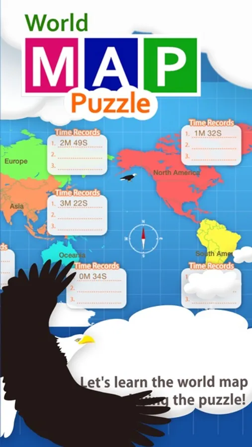 The world can be divided into six continents (41 nations in Asia, 42 nations in Europe, 49 nations of Africa, 16 nations of North America, 13 nations of South America and 7 nations of Oceania), and the puzzle can be enjoyed with each continent.