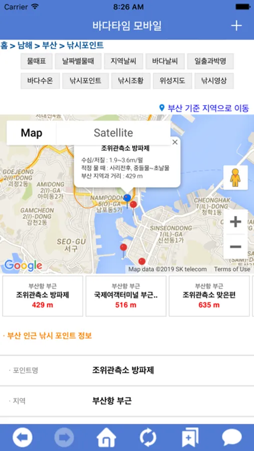 ▶ 바다타임에서 제공하는 물때 지역 정보 ◀