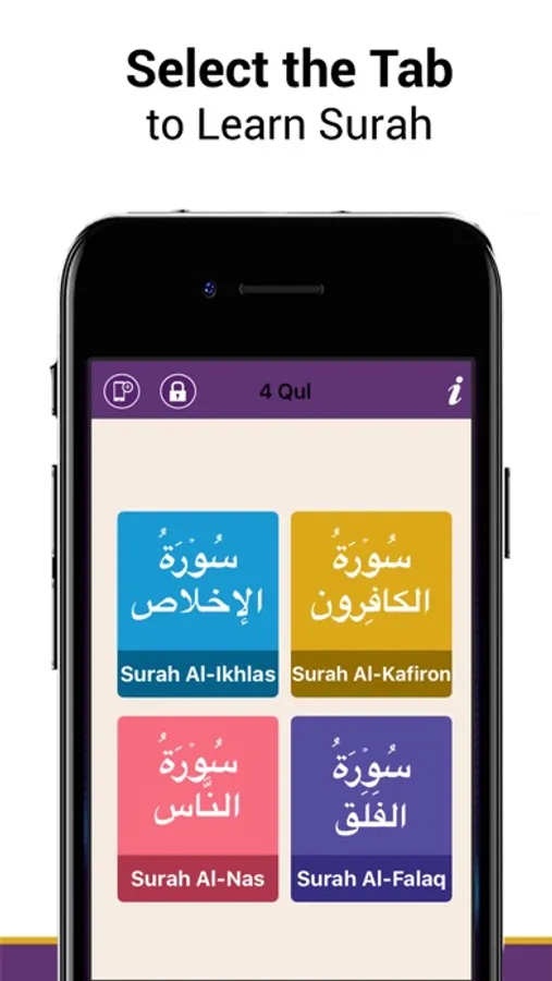 4 Qul, an easy to use application, is being provided to you to get the blessings of Allah Almighty by reciting on your devices and learning by heart. These surahs include Surah Al-Ikhlas, Surah Al-Kafiroon, Surah Al-Falaq, and Surah An-Nas.
