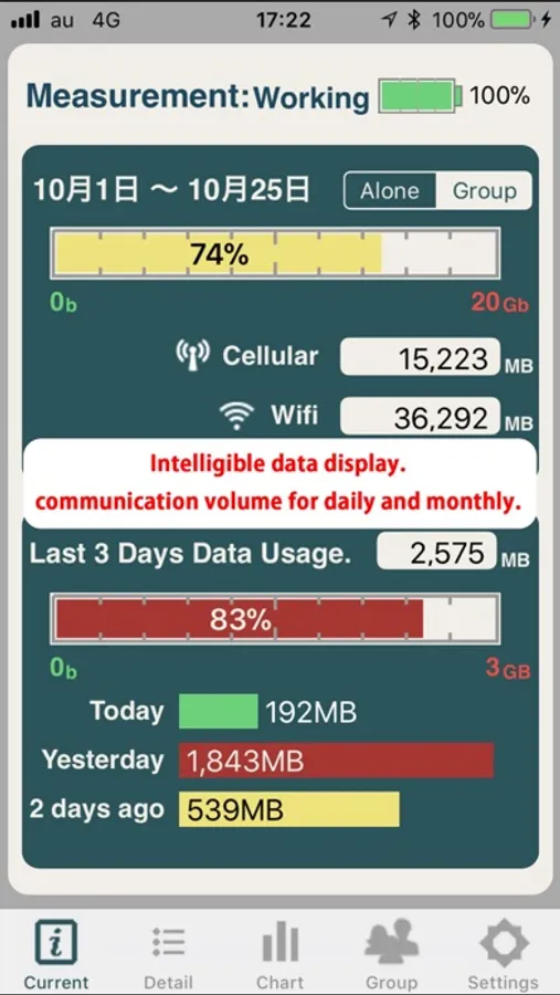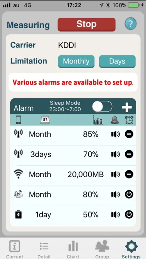 It gives you notifications of data communication volume based on your communication usage limit for the month or selected days in addition to a remaining battery.