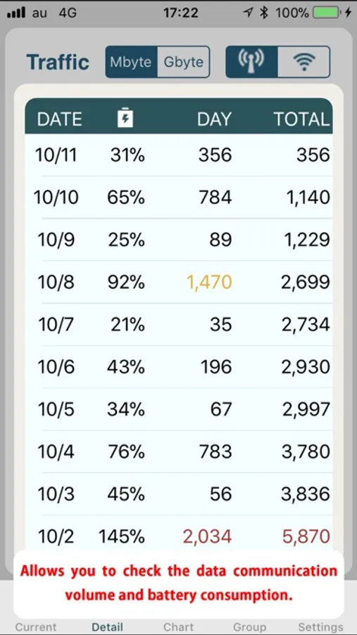 It also keeps a track of daily data communicant volume separately for mobile and WiFi.