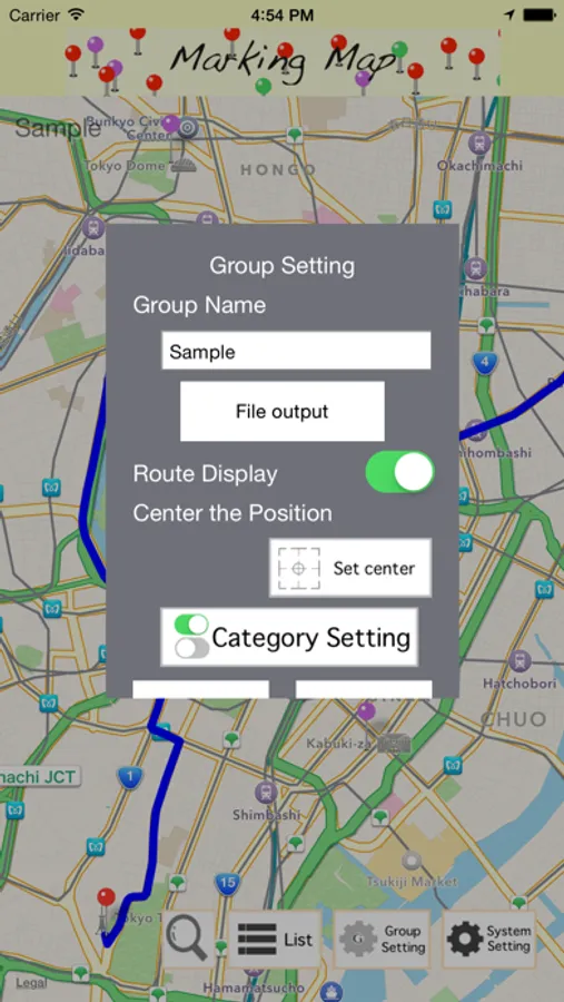 " Marking MAP " is the application for managing by grouping more than one point on the map .
