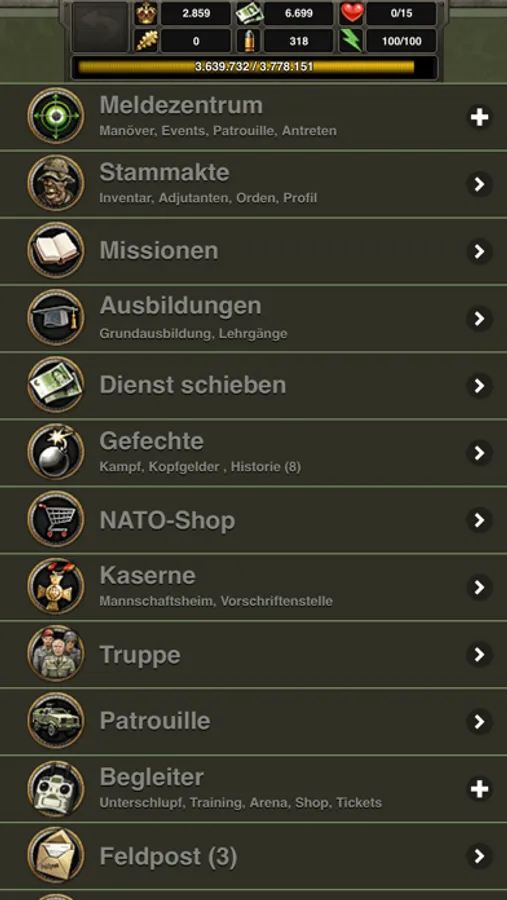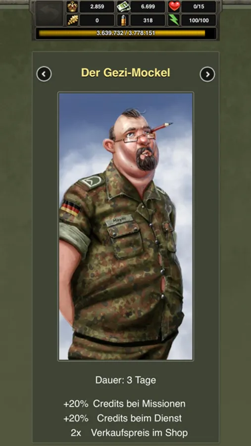 Aaaaaaachtung! Im Namen des Oberführungskommandos wurdest du zum Wehrdienst einberufen. Trete deinen Dienst im Soldatenspiel an, in dem du, auf satirische Art und Weise, die Ausbildung eines deutschen Bundeswehr-Soldaten von A wie Arschkriechen bis Z wie ZDV durchläufst. Auf deinem Weg zur Spitze der Karriereleiter kannst du Missionen erledigen, Wache schieben oder deine Fähigkeiten weiter ausbilden, um so in Gefechten mit anderen Soldaten bestehen zu können. Gründe eine Truppe oder schließe dich erfahrenen Soldaten an und helfe dabei Ressourcen zu beschaffen, den Stützpunkt weiter auszubauen und Manöver gegen feindliche Truppen zu gewinnen. So steht deinem Ziel, von der Made zum erfolgreichen Feldherrn, nichts mehr im Weg.