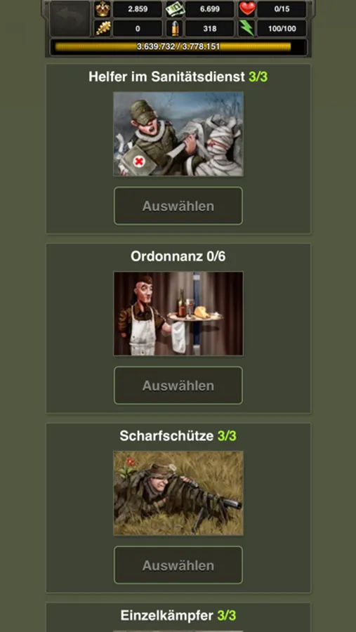 • Trainiere deinen Soldaten in 3 verschiedenen Ausbildungen