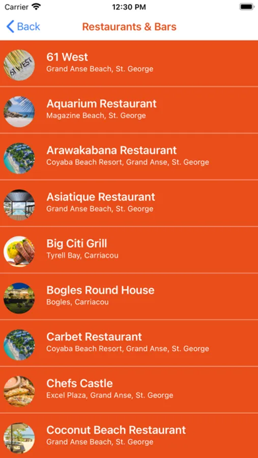 Accommodation in Grenada & Carriacou is also featured with the same functionality as the restaurant button.