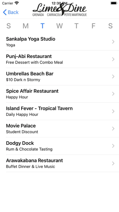 Limin' Calendar - see what's happening during the week.