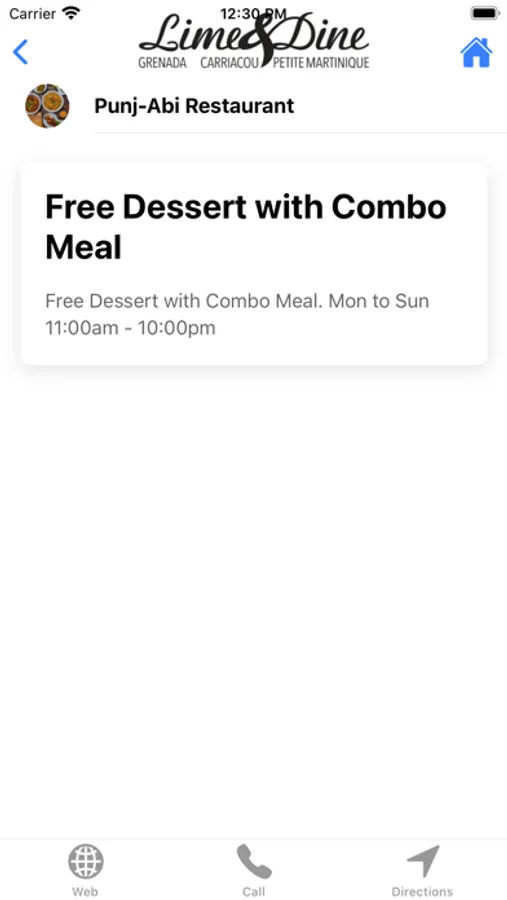 The app features buttons for; restaurants & bars with descriptions of each, a copy of their advertisements from the Lime & Dine publication, a link to their websites and an auto-dial function to the establishment, on command of the user.