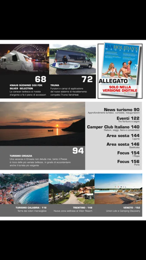 Da 40 anni è il punto di riferimento per tutti gli appassionati di turismo di movimento. Un mix di servizi e cultura della vacanza in caravan e camper che spazia dall’accessoristica alle analisi tecniche dettagliate dei veicoli ricreazionali, alle mete italiane ed estere, ai suggerimenti per rendere piacevole il viaggio. For the lovers of moving tourism: a mix of services and culture of the holidays by caravan and motohome, dealing with accessories, detailed news about recreational vehicles, Italian and foreign destinations and suggestions to let the travel amazing and amusing