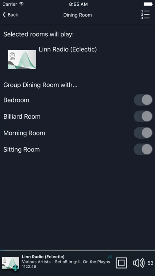 Own more than one Linn DS player? Kazoo’s specially designed multi-room feature lets you link rooms together or control them separately, all from one simple app.