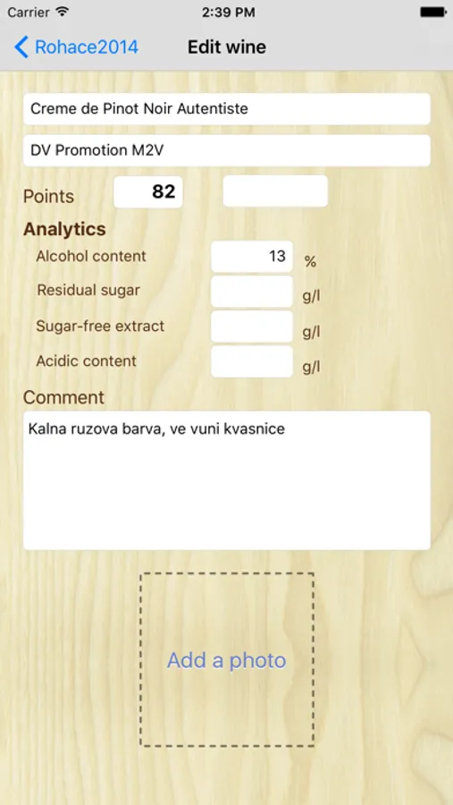 If you visit wine tasting events and try various wines, this application is for you. Make notes, record information on individual samples and stay perfectly up-to-date on the wines you have tasted. If you wish to work with the data further on a PC, you can simply send your records to any e-mail address.