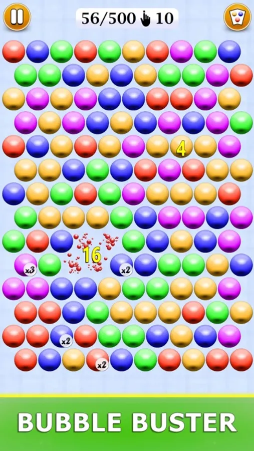 Bubble Buster is addictive and easy to play. Simply tap on groups of 2 or more bubbles to bust them. Bust bigger groups to get more points. As you play more it will become easier to spot the larger groups of bubbles.