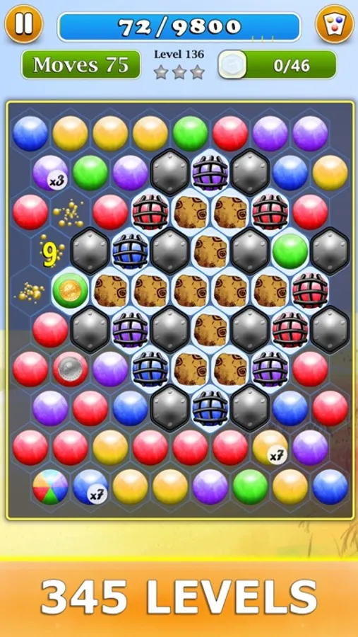 - Quest with 345 levels filled with special bubbles, multipliers, prizes and power-ups.