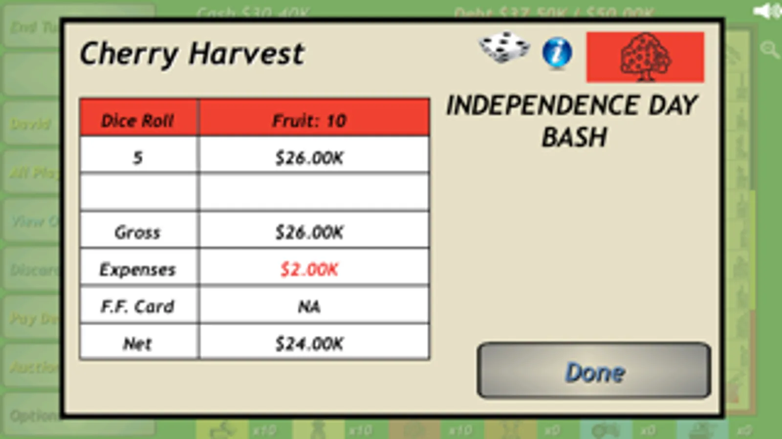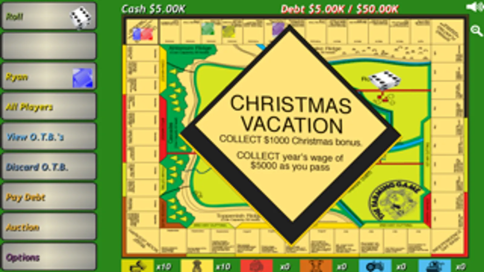 THE FARMING GAME®, a Monopoly style board game where players harvest crops with the roll of the dice, dodge droughts, uncertain markets and insects. Buy land, cattle, wheel and deal. Always different and always a challenge. Build the best farm in the county. A truly rewarding time that entertains, teaches and is just plain fun. An International award-winning game! Hundreds of thousands of copies sold. Fresh from the country. A classic family board game! So much fun, some people say it's the best game they've ever played, others call it addictive. This international award-wining game has sold hundreds of thousands of copies. So educational, it has been used by homeschoolers and thousands of schools around the world. So realistic, World Bank had it translated into Russian to assist farm privatization. Good clean wholesome fun. THE FARMING GAME ® is perfect for home on any rainy day or family get together, for a weekend up at the cabin, or down at the beach. A great gift for anyone, including yourself! One size fits all. PLOW THE BACK FORTY ON YOUR KITCHEN TABLE A board game is a dream machine, a vehicle to create an alternative reality. In THE FARMING GAME®, each player starts the game with 20 acres inherited from Grandpa. This property includes 10 acres in hay and 10 acres in grain. The 20 acres is not a large enough farm to make a living for a family, so each game farmer must also have a part-time job in town. With each completed trip around the game board you receive $5,000 from your year's wages to plow back into the farm. The object of THE FARMING GAME" is to build your farm large enough to be able to quit the job in town, come home to be your own boss, and farm full time. If you can do that without going broke, you win the game! $250,000 in total net assets are required to win THE FARMING GAME®. The gaming track is the calendar year, with a square for each week. Crops are harvested by the roll of the dice (about as much control as real farmers feel they have over yields and prices received for their crops). In THE FARMING GAME®, there is enough acreage for six players to diversify into a hay, grain, fruit, or cattle operation. Each individual farm is capable of pasturing 20 head of cattle. If any player wishes to run more than 20 cows, he can try to lease one of the range units in the hills. Warning: This family game is so much fun it may become habit-forming!