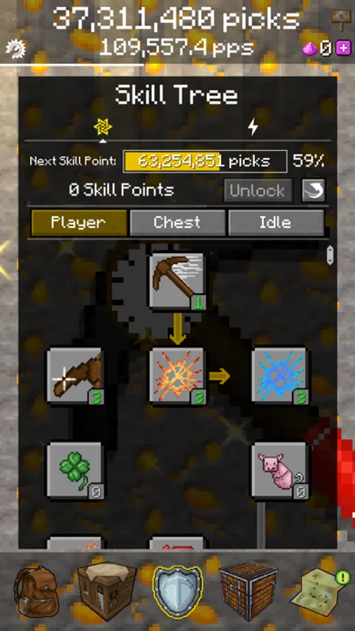 PickCrafter is an incremental idle crafting clicker game that lets you take control of a pickaxe and dig deep into the biomes. Even while idle or offline! Just start tapping to mine. Upgrade Legendary Pickaxes, collect all the blocks and gear, and unlock all the Biomes. Digging for gold has never been more exciting! Tap to start, then upgrade your Artifacts and Abilities to mine deeper, faster.