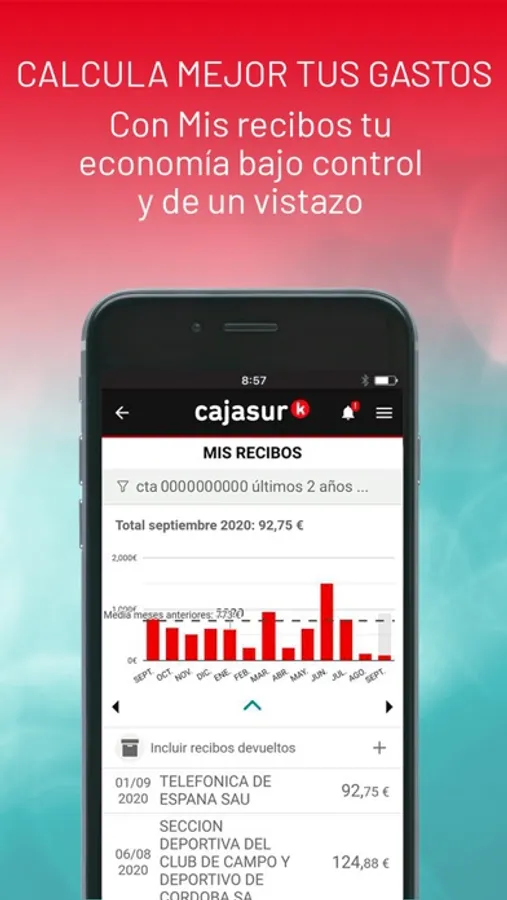 Recibos: Control total: Paga con cámara, gráficos para control del gasto, cambia la cuenta, recibe avisos, consulta los recibos pendientes…