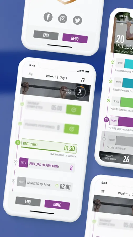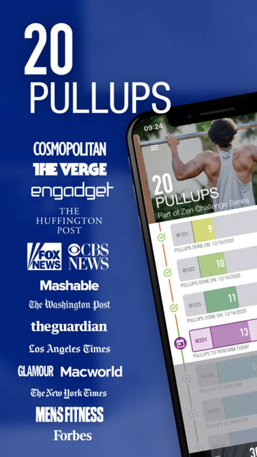 Using a proven program, you will be able to complete 20 straight pull-ups after just 6 weeks! The Zen Challenge Series is tailored towards all fitness levels. From first-timers to fitness veterans, this app will build up your strength and stamina to complete 20 pull-ups. Can't do a single pull-up? Don't worry, there is a built-in program to help you build strength to get there!