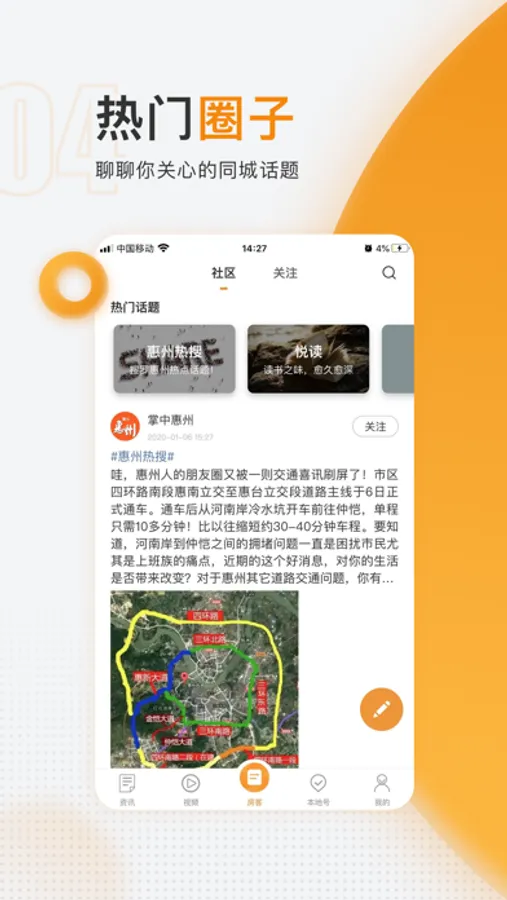 同城闲置、亲子圈、租房找房、热点爆料、美食优惠等等;一起发现身边人的新鲜事,共同参与讨论感兴趣的话题。