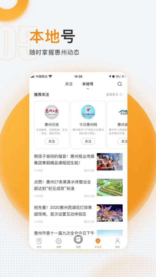 第一时间向广大用户传递惠州本地热点、头条新闻,及时跟进有深度的事件分析,直播现场; 依托惠州最具影响力的惠州日报社全力打造惠州本地最权威的移动媒体。