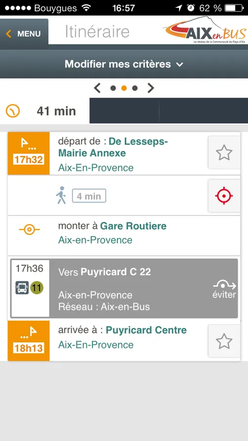 - Personnalisez votre itinéraire selon votre mode de déplacement (marche à pied, moins de correspondance…)