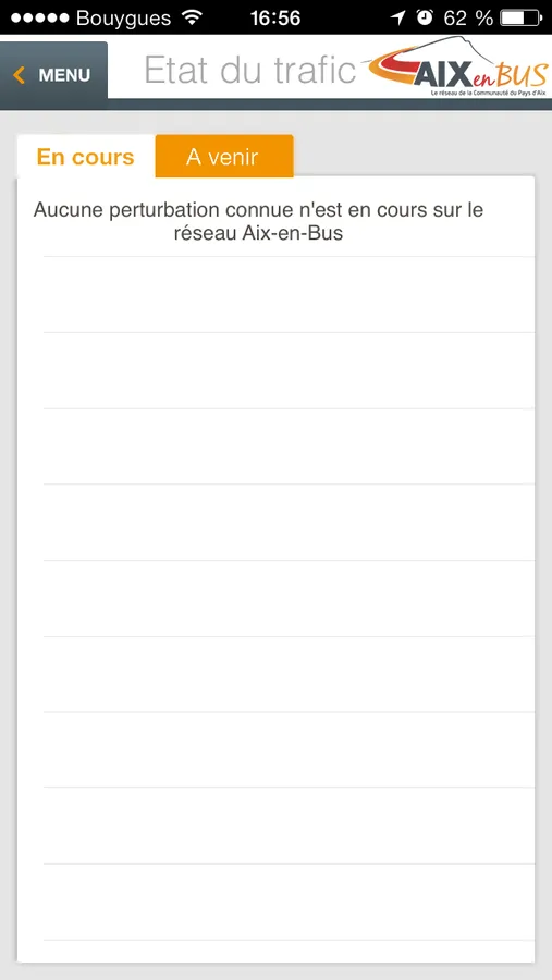 - Vérifiez les perturbations en cours ou à venir sur le réseau dans la rubrique « Etat du trafic » et voyagez sereinement.