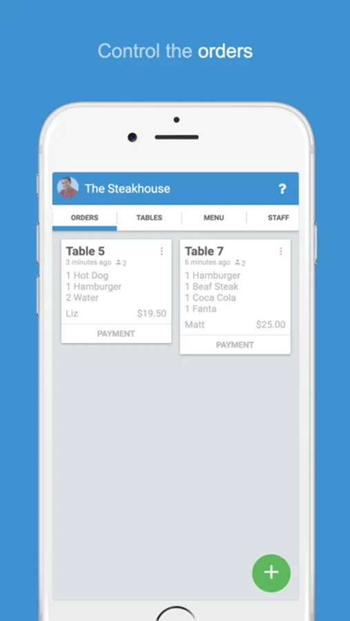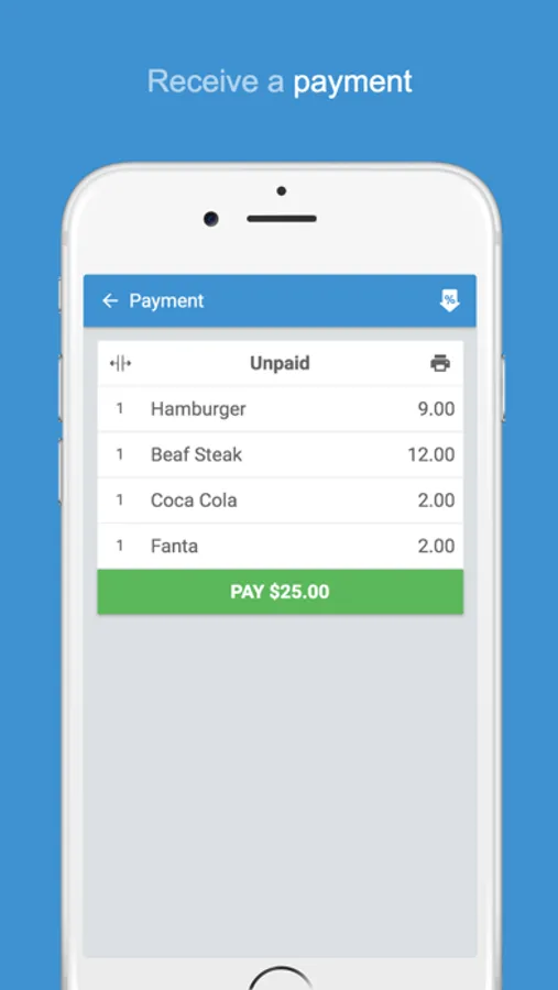 Waiterio is a fully functional POS system. Calculate the total for an order and receive the payments by cash or payment card.
