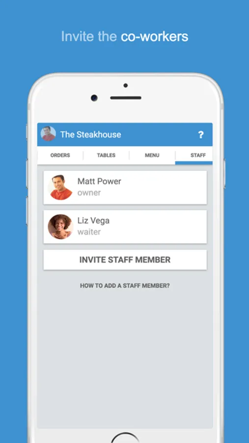 Invite your colleagues to use Waiterio so orders and menu are automatically shared.