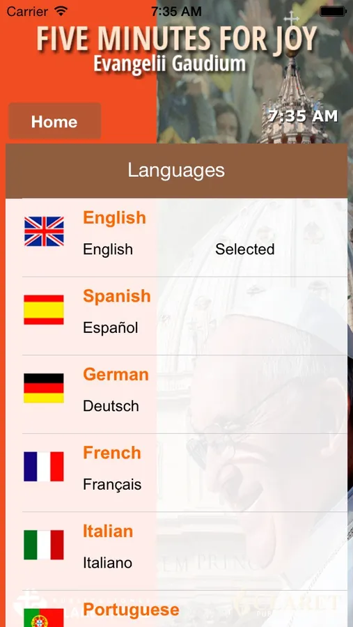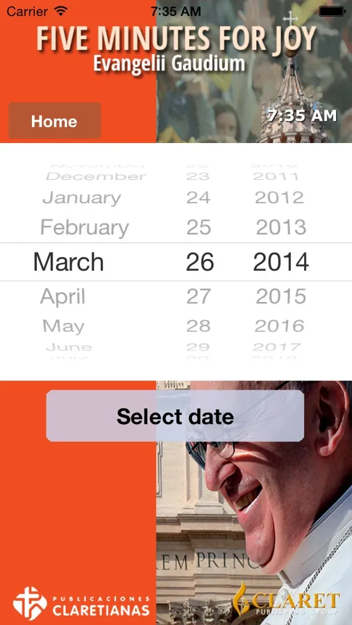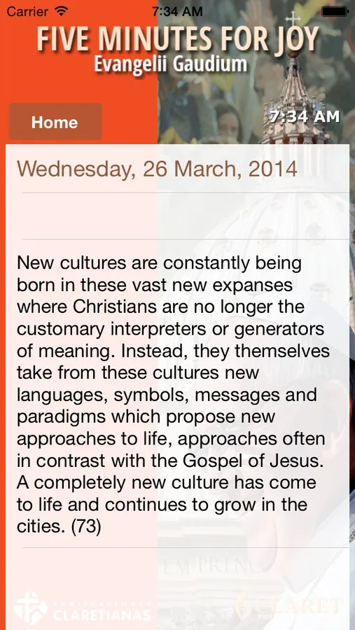 iOS version of "Five minutes to Joy" developed by the Secretariat of Media and New Technologies of the Claretian Missionaries (Santiago Province).