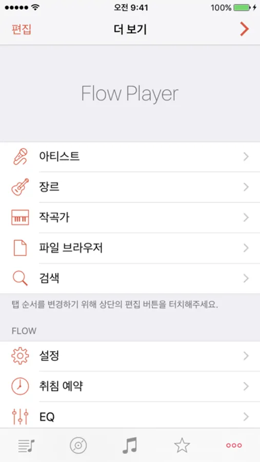 PC의 iTunes와 재생 횟수, 스마트 재생목록, 그리고 애플 뮤직 등 기능을 Flow Player에서 그대로 사용할 수 있으며, 애플 워치의 기본 음악 앱에서 Flow Player에서 재생한 음악을 제어할 수 있기 때문입니다.